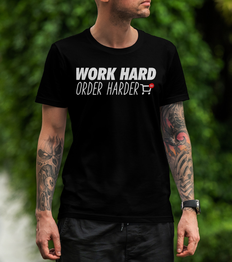WORK HARD ORDER HARDER Shopping Cart Emoji 100 T-Shirt
