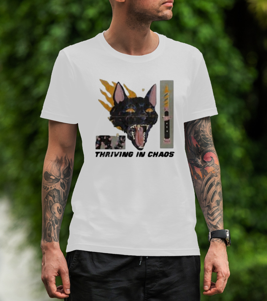 Galactixy Thriving In Chaos Cat With Flames And Dagger T-Shirt