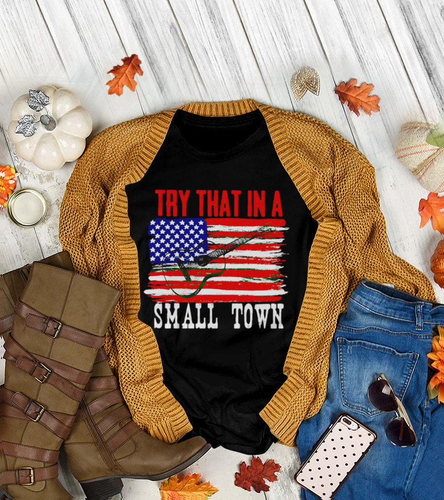 TRY THAT IN A SMALL TOWN AMERICAN GUITAR FLAG T-Shirt