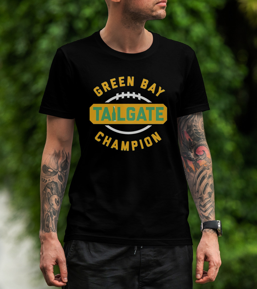 The Green Bay Tailgate Football Champion T-shirt is designed for everyday wear and a consistent fit. Fabric is pre-shrunk ring-spun cotton with durable stitching. See the size chart below for exact measurements.