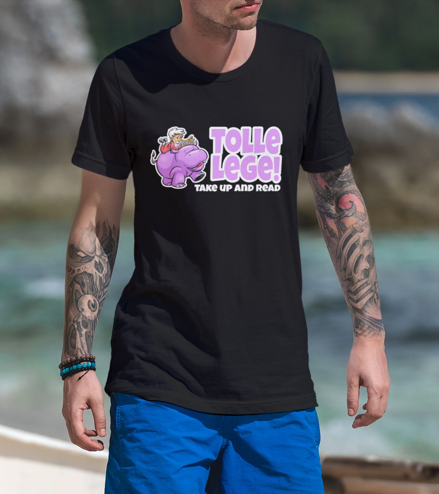 Tolle Lege Take Up And Read Purple Hippo And Child Reading T-Shirt