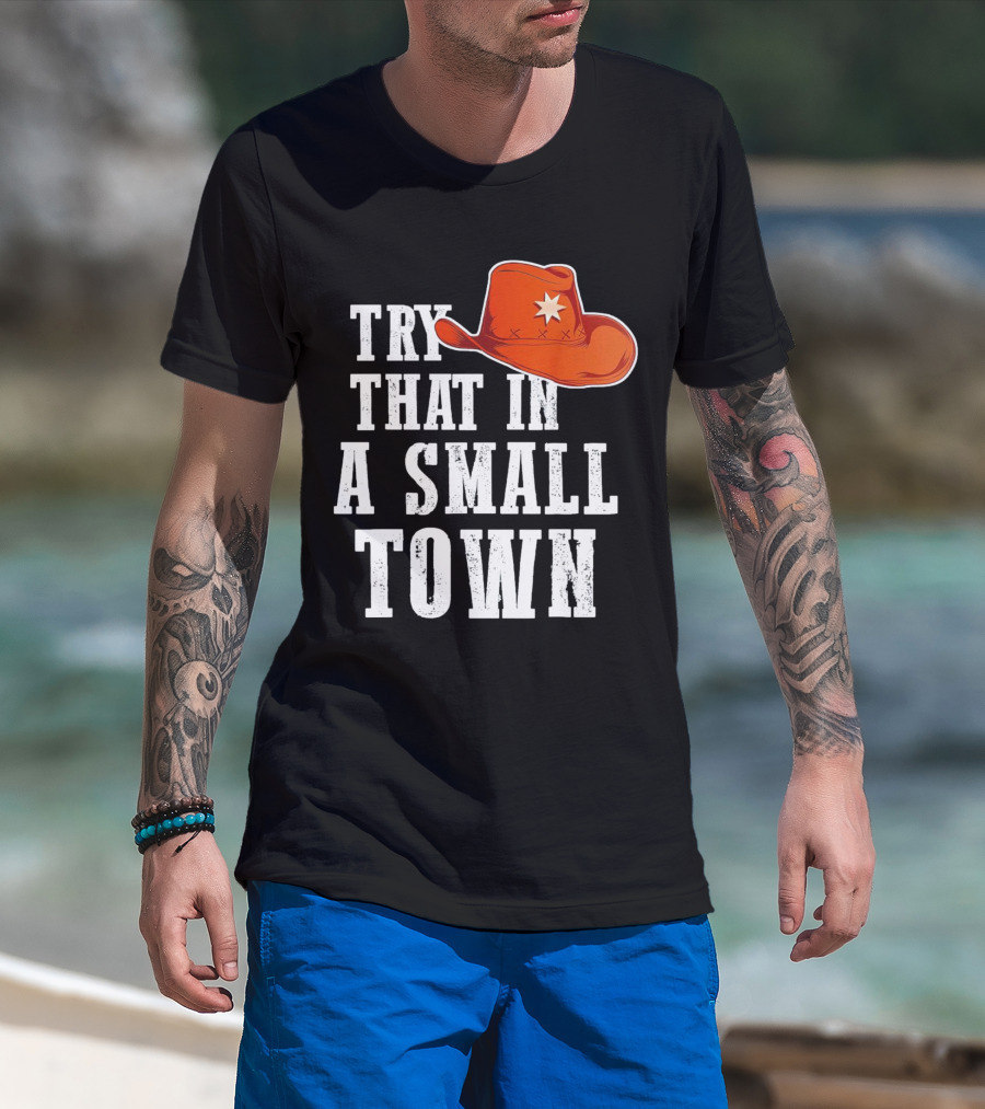 Try That In A Small Town Western Cowboy Hat T-Shirt