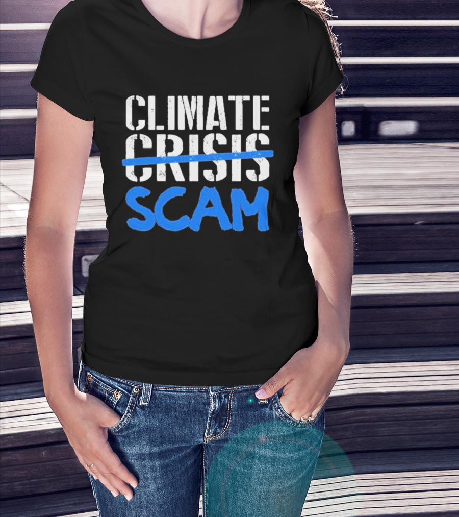 Climate Crisis Scam Controversy Text T-Shirt