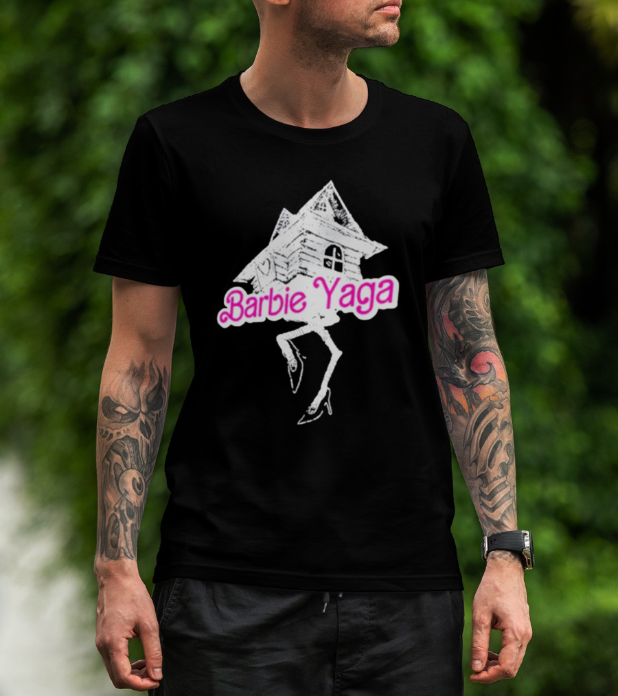 The Barbie Yaga Witch House with High Heels T-shirt is designed for everyday wear and a consistent fit. Fabric is pre-shrunk ring-spun cotton with durable stitching. See the size chart below for exact measurements.