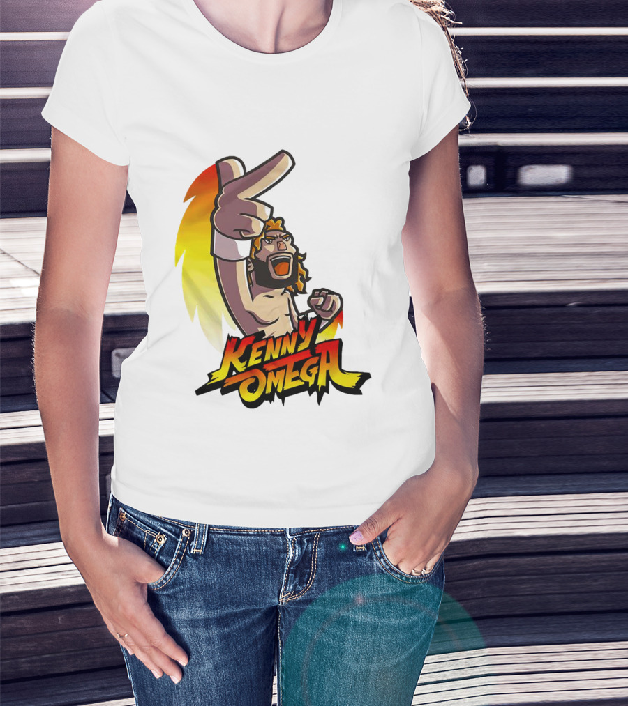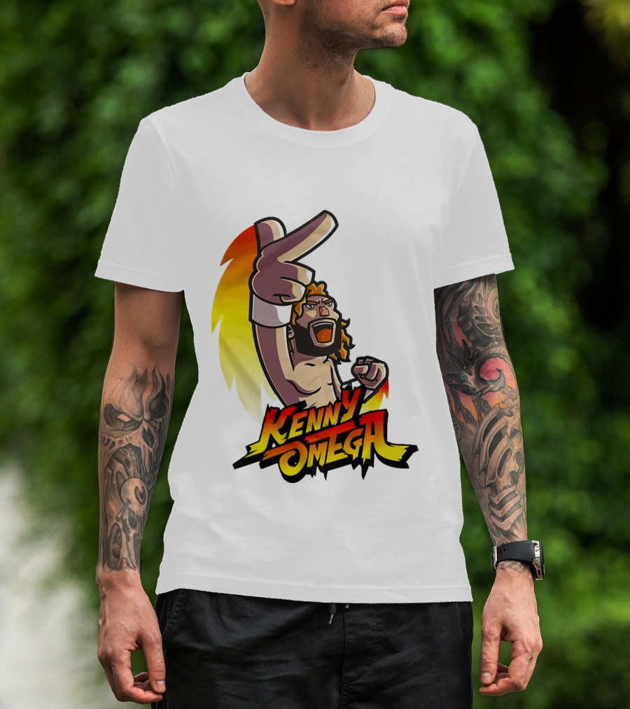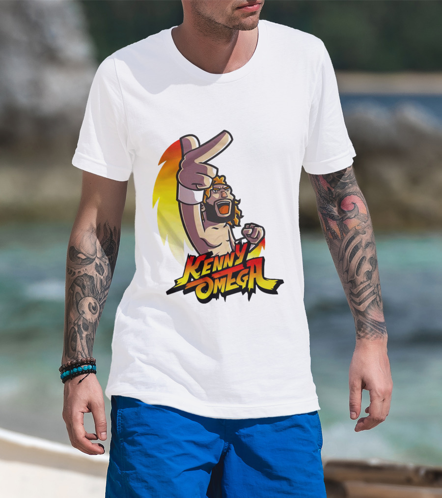 Kenny Omega Cartoon Character With Street Fighter Style Gesture And Two-Finger Pose T-Shirt