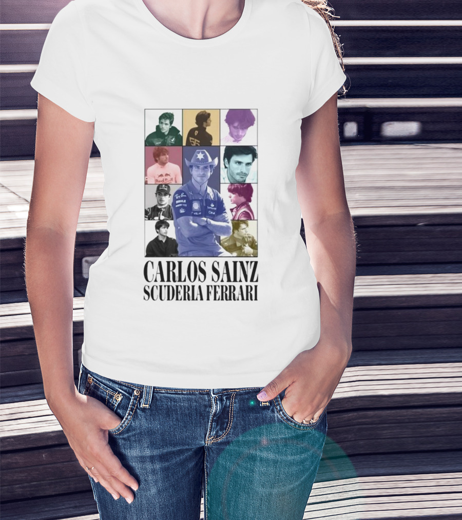 How much will this Carlos Sainz Scuderia Ferrari Red Bull Racing Portrait Collage shirt shrink?