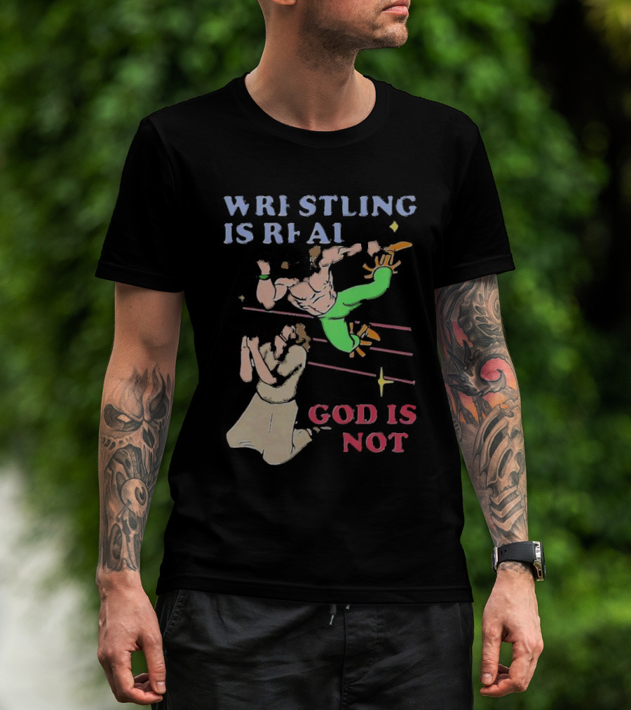 Wrestling Is Real God Is Not Wrestler Jumping Over Praying Man T-Shirt
