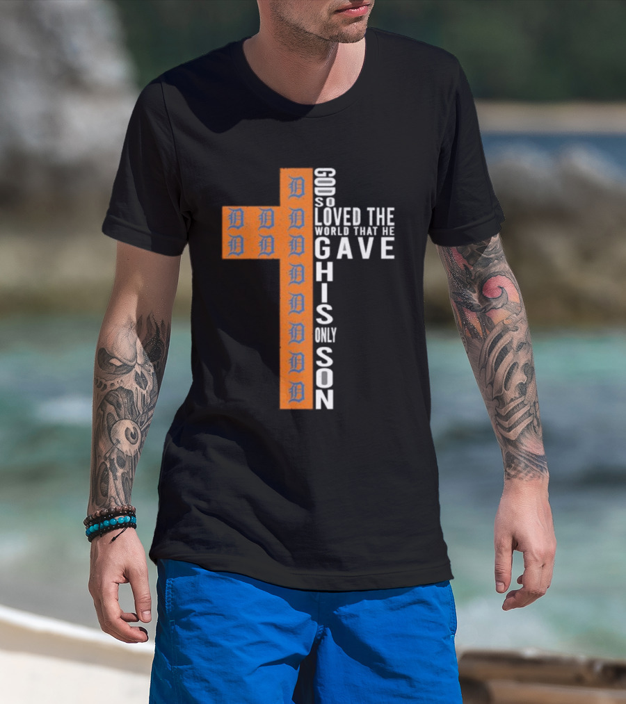 Detroit Tigers Cross God So Loved The World That He Gave His Only Son T-Shirt