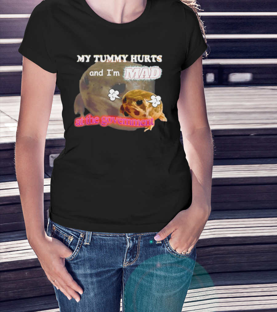 Swankyswamprat My Tummy Hurts And I'm Mad At The Government Meme Frog T-Shirt