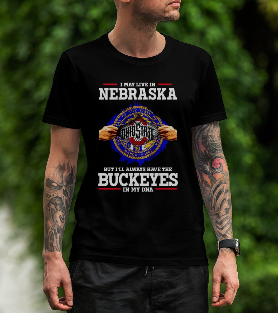 I May Live In Nebraska But I’ll Always Have The Buckeyes In My DNA Ohio State Seal T-Shirt