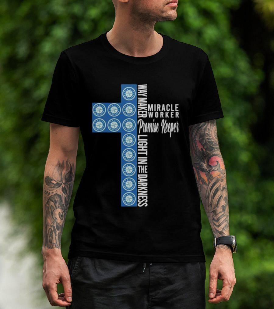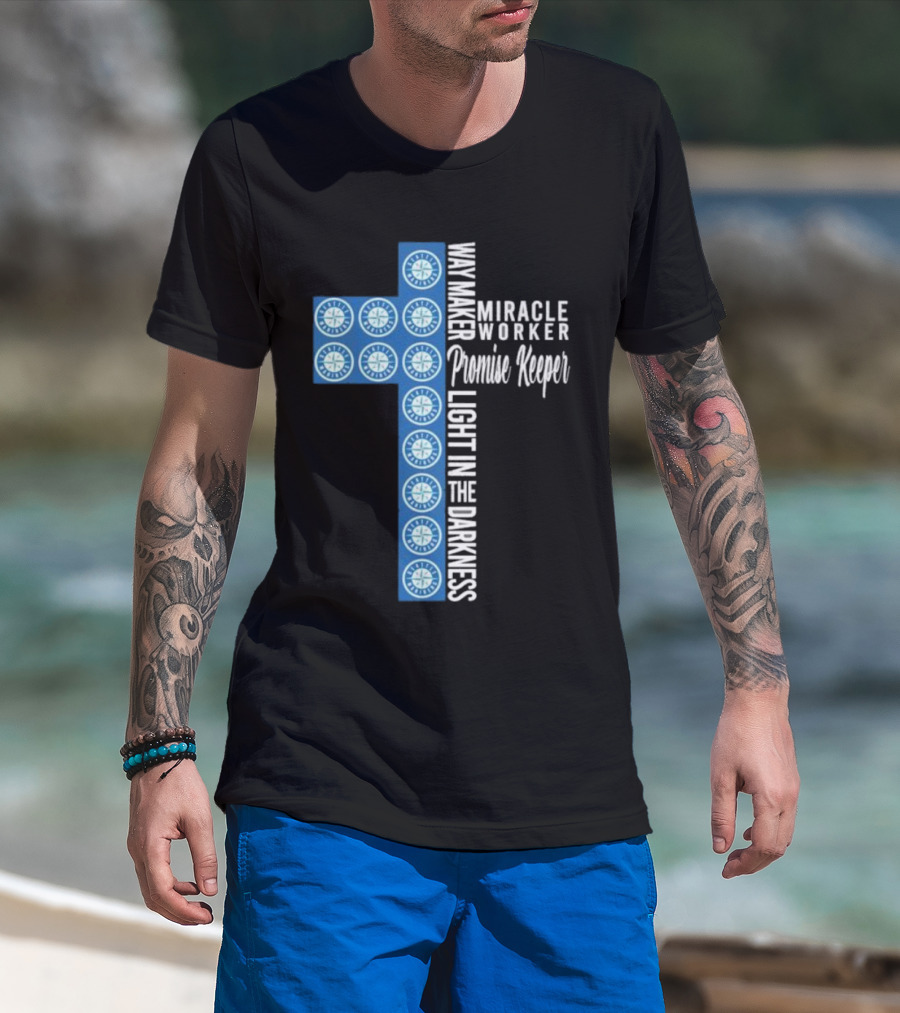 Seattle Mariners Way Maker Miracle Worker Promise Keeper Light In The Darkness Cross T-Shirt