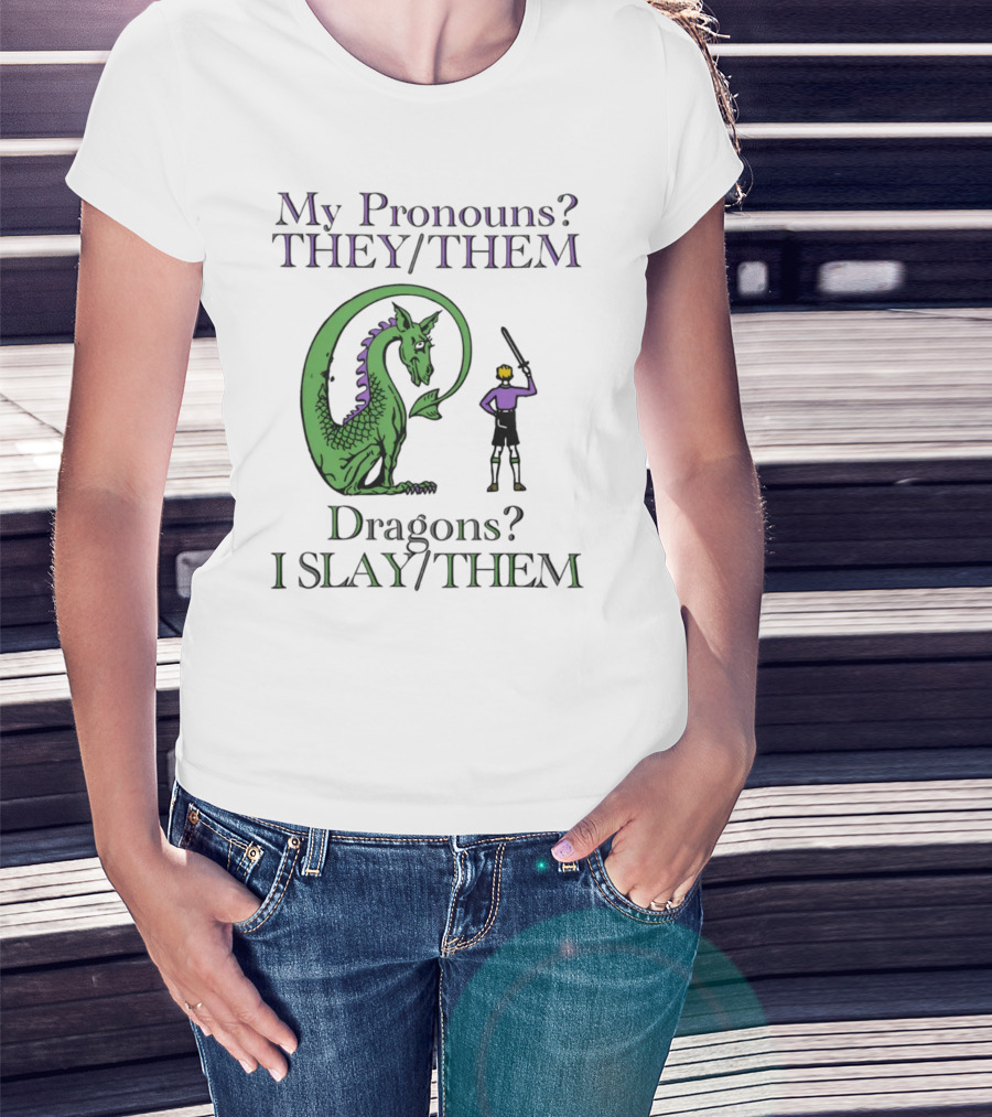 My Pronouns TheyThem Dragons I SlayThem Knight And Dragon Battle T-Shirt