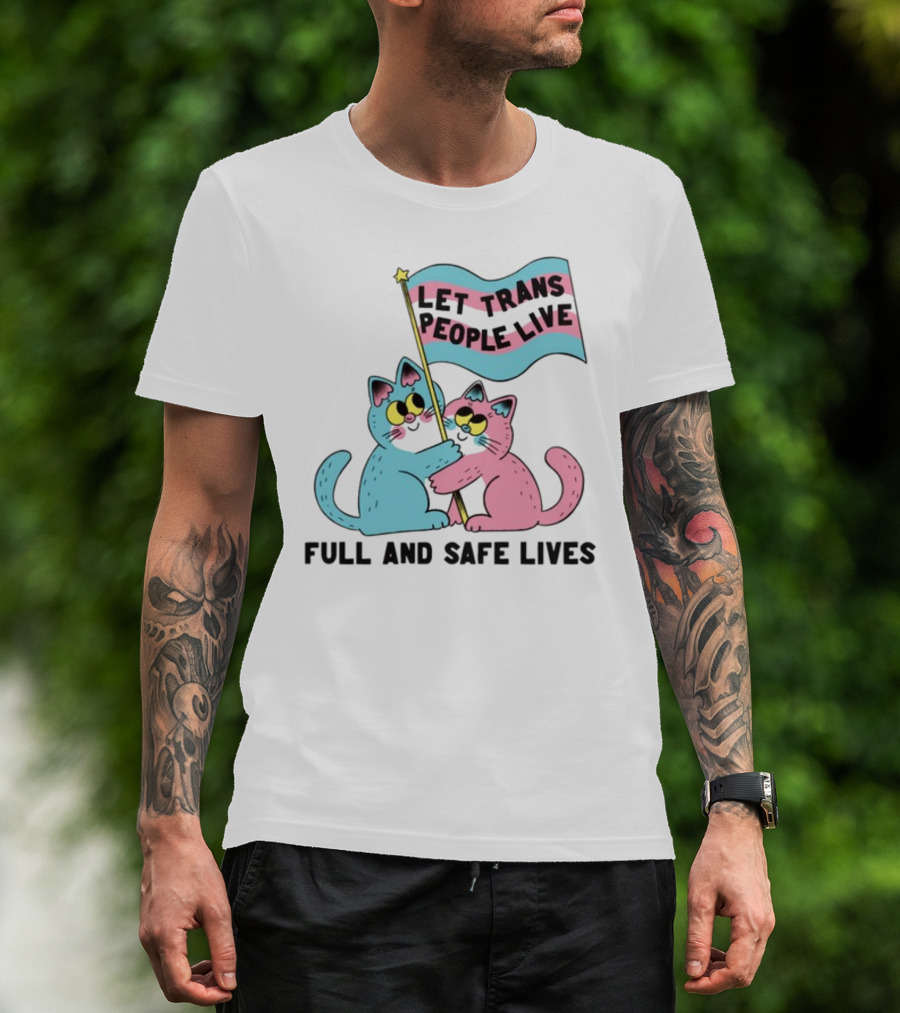 Let Trans People Live Full And Safe Lives Cats Hugging Trans Flag T-Shirt
