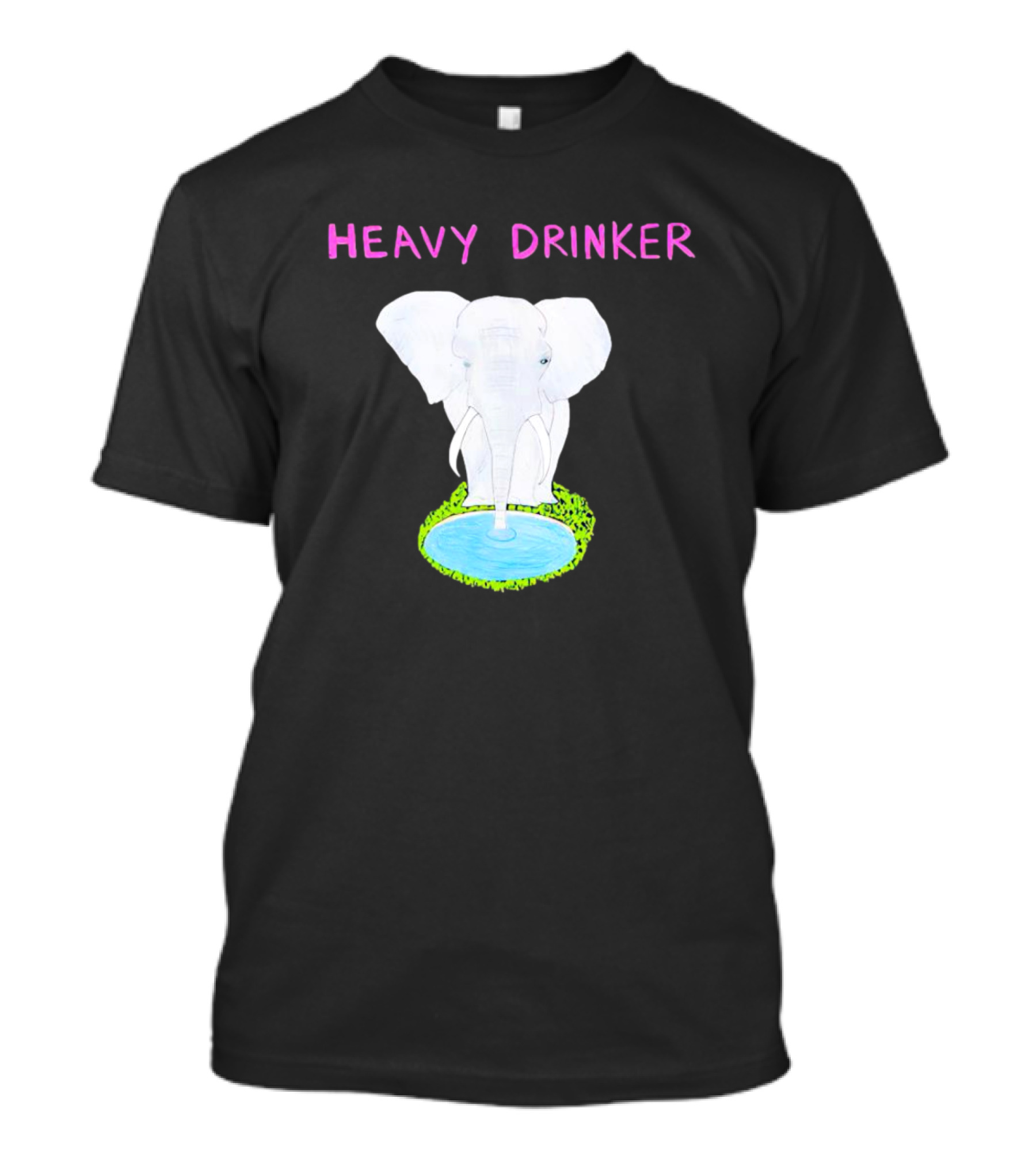 The Elephant Heavy Drinker Water Humor T-shirt is designed for everyday wear and a consistent fit. Fabric is pre-shrunk ring-spun cotton with durable stitching. See the size chart below for exact measurements.