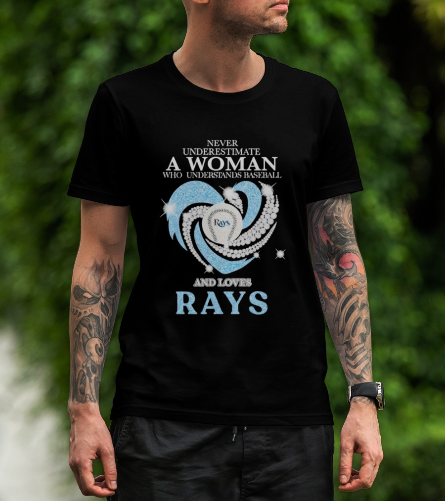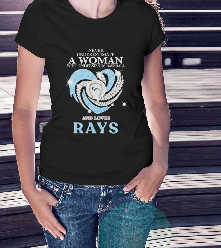 Never Underestimate A Woman Who Understands Baseball And Loves Rays Diamond Heart T-Shirt