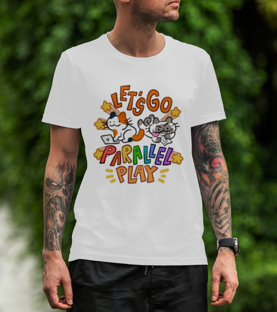Biscocho Let's Go Parallel Play Cats With Game Controllers And Headphones T-Shirt