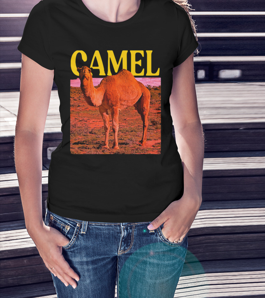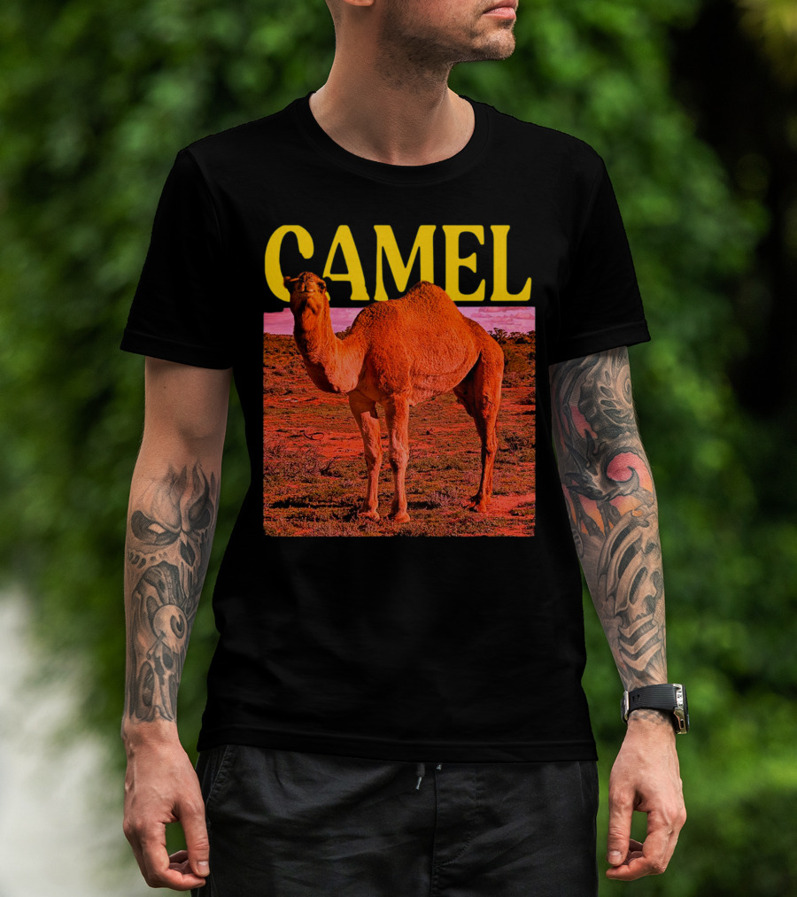 Camel In Vibrant Orange Desert Landscape T-Shirt