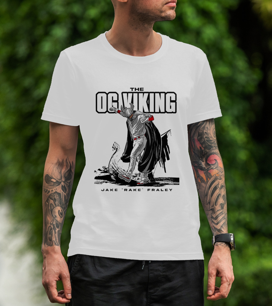 The The OG Viking Jake Rake Fraley in Viking Armor T-shirt is designed for everyday wear and a consistent fit. Fabric is pre-shrunk ring-spun cotton with durable stitching. See the size chart below for exact measurements.