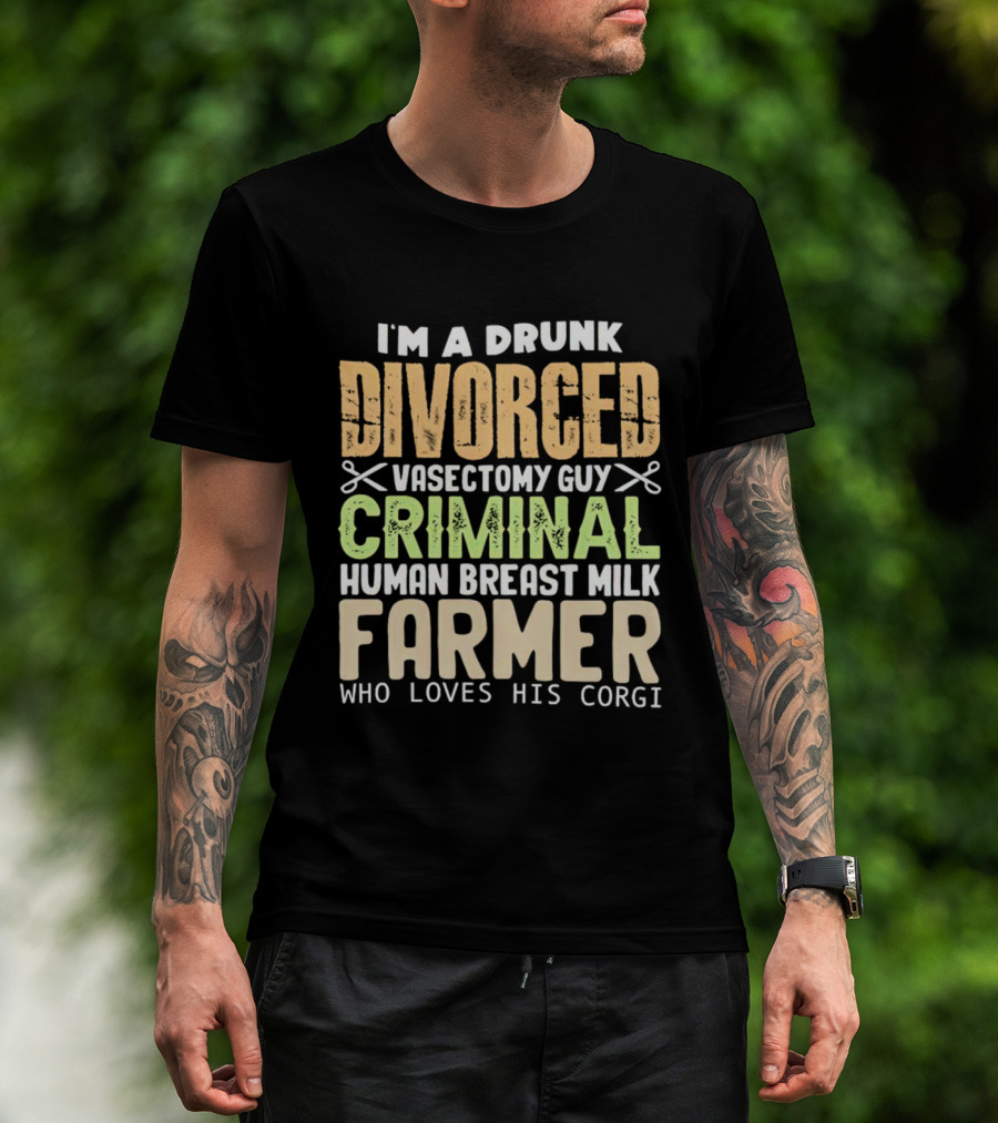 I'm A Drunk Divorced Vasectomy Guy Criminal Human Breast Milk Farmer Who Loves His Corgi T-Shirt