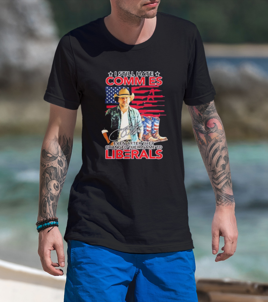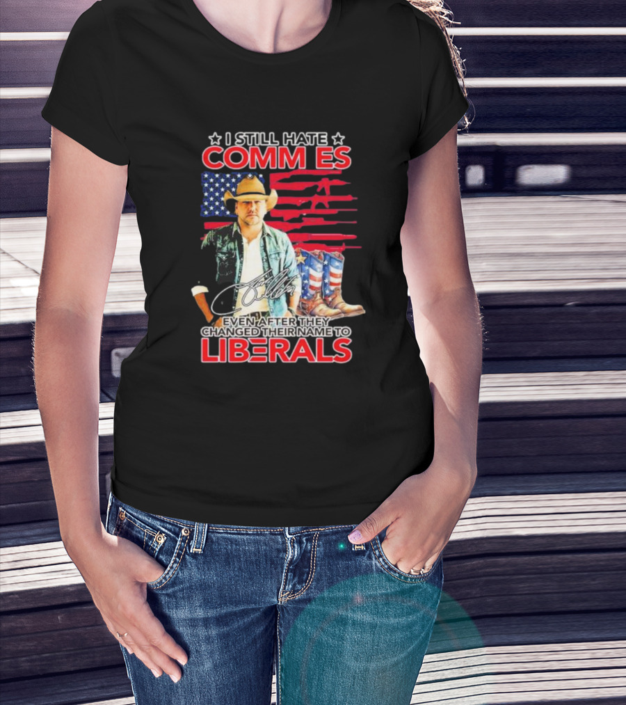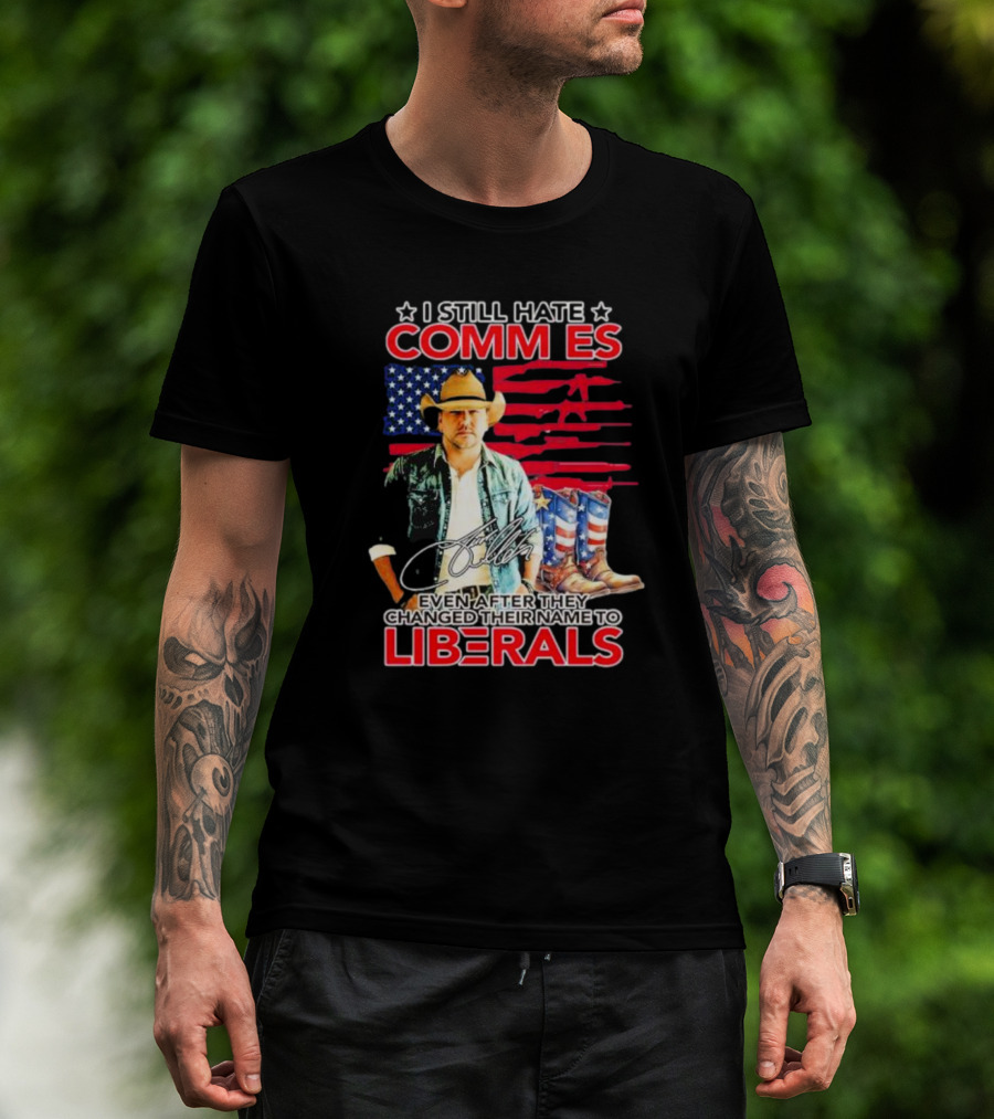 I Still Hate Commies Even After They Changed Their Name To Liberals Cowboy American Flag Boots T-Shirt