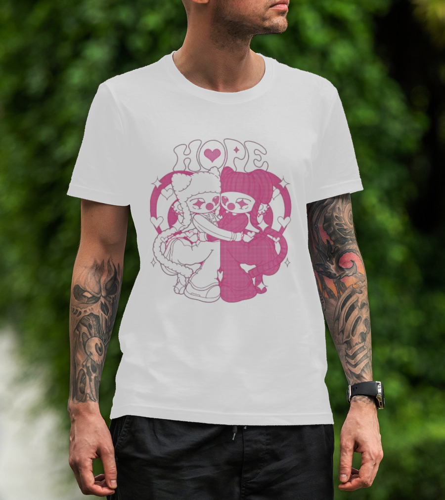 The Hope Heart Embrace LizI Grace T-shirt is designed for everyday wear and a consistent fit. Fabric is pre-shrunk ring-spun cotton with durable stitching. See the size chart below for exact measurements.