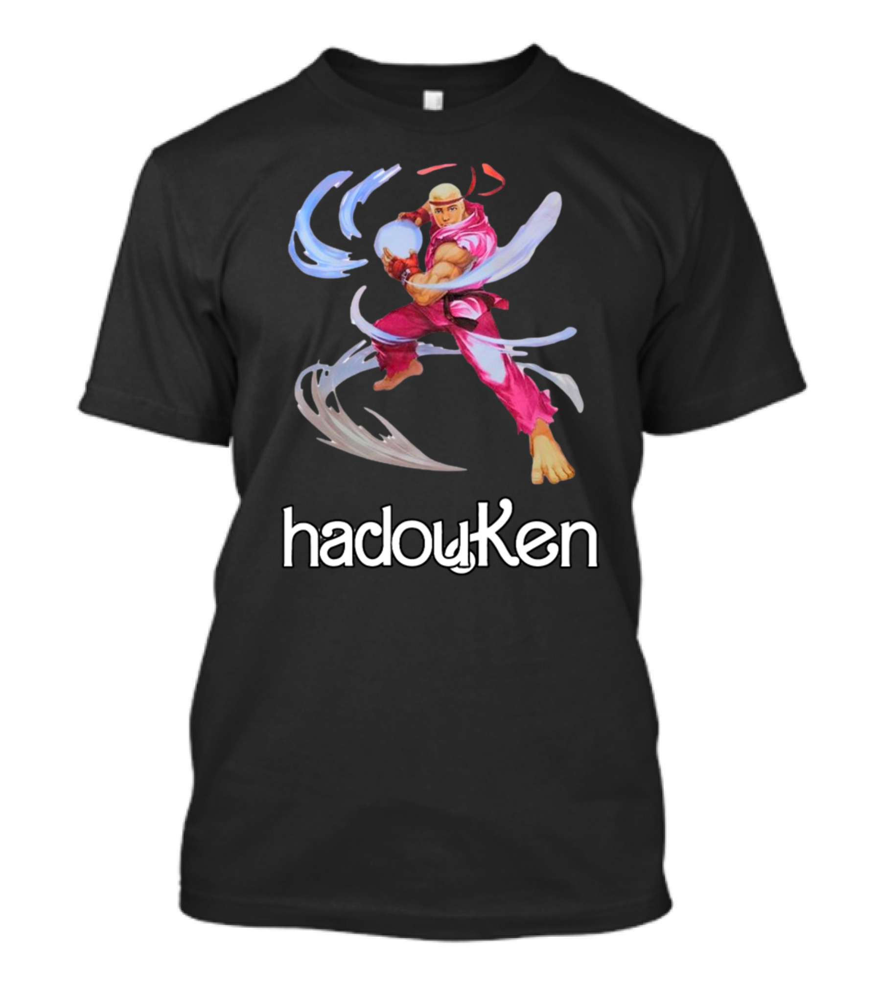 The Hadouken Gaymer Barbie Ken Street Fighter Crossover T-shirt is designed for everyday wear and a consistent fit. Fabric is pre-shrunk ring-spun cotton with durable stitching. See the size chart below for exact measurements.