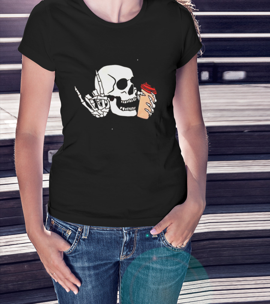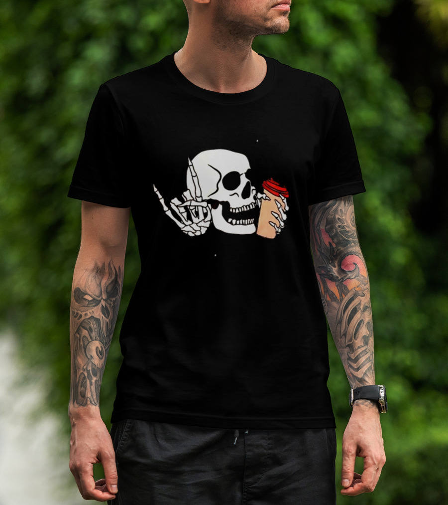 Dead Inside But Alive In Christ Skeleton With Coffee Cup T-Shirt