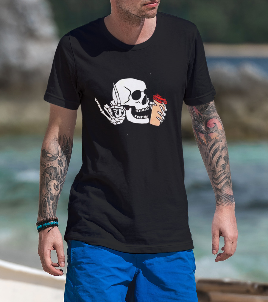 The Dead Inside But Alive In Christ Skeleton with Coffee Cup T-shirt is designed for everyday wear and a consistent fit. Fabric is pre-shrunk ring-spun cotton with durable stitching. See the size chart below for exact measurements.
