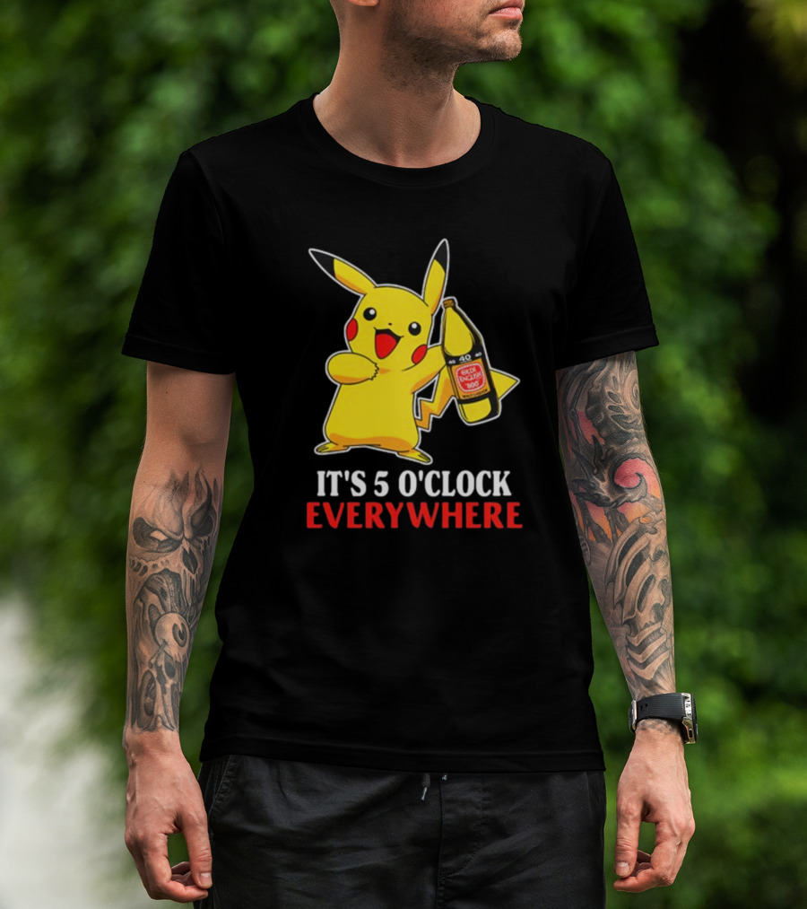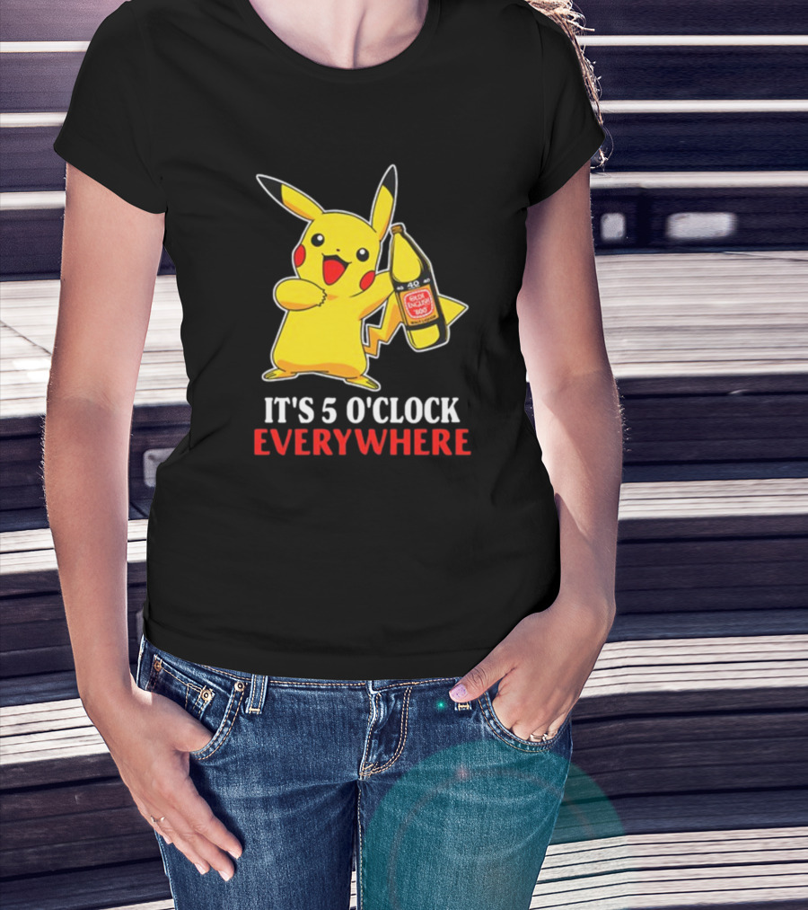 Pikachu Holding Olde English 800 It's 5 O'Clock Everywhere T-Shirt
