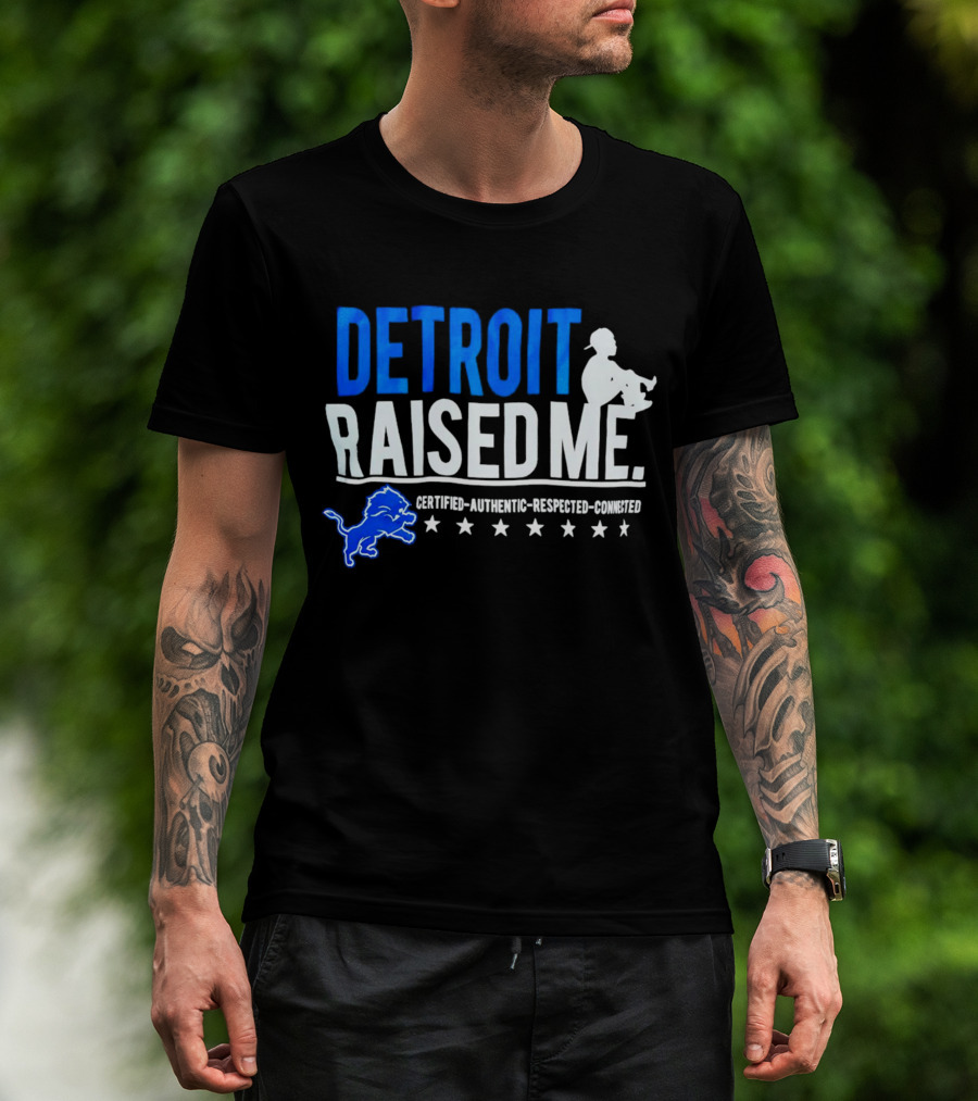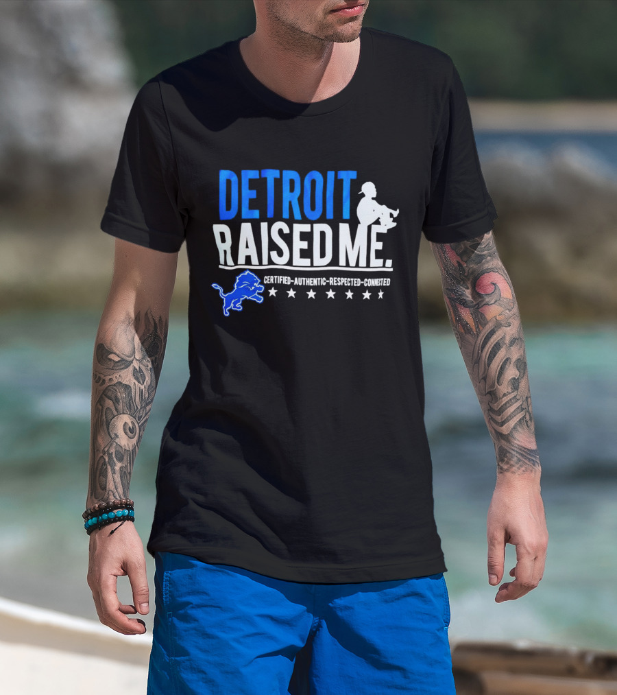 Detroit Raised Me Certified Authentic Respected Connected Lions Motif T-Shirt