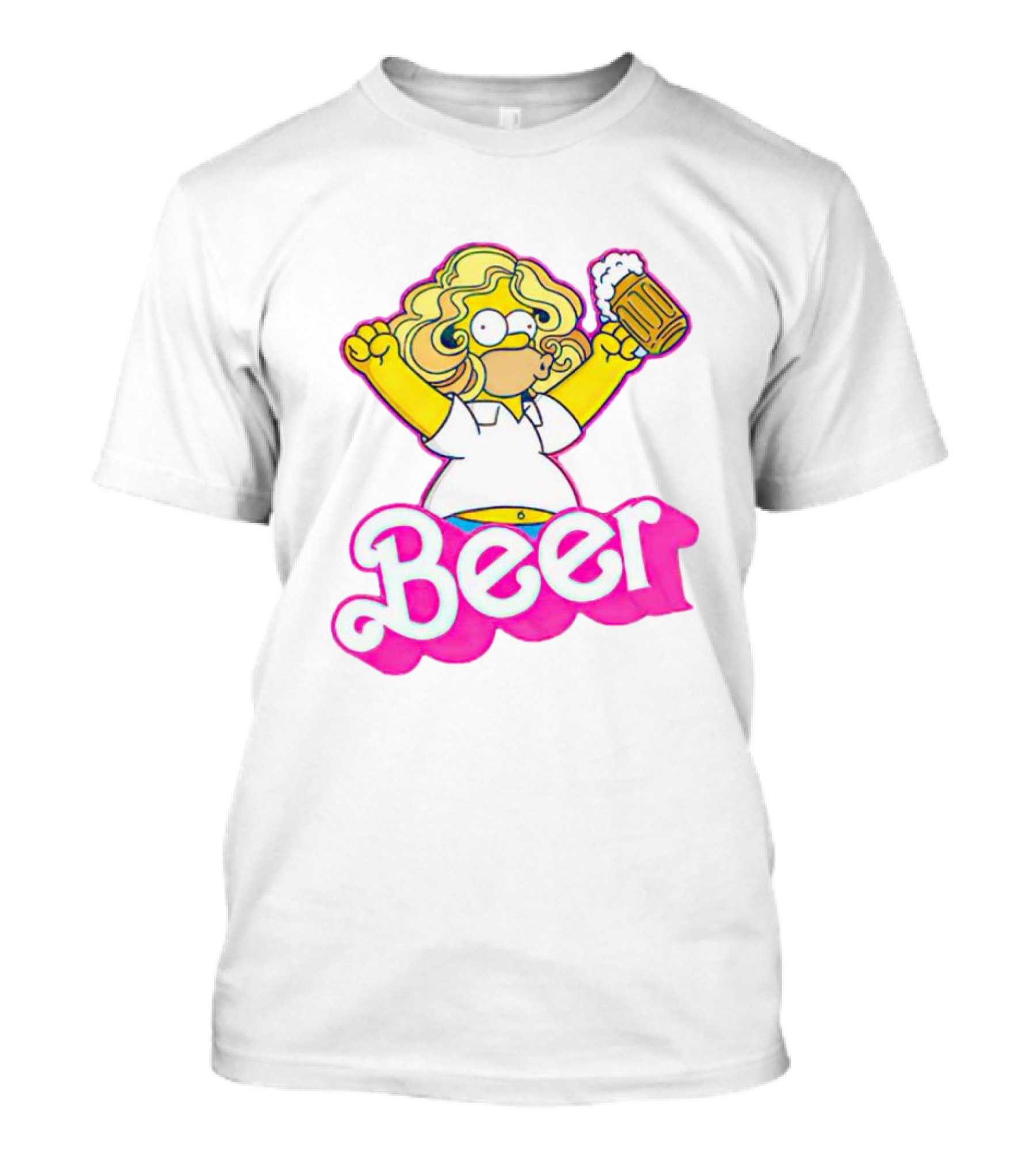 The Barbie Homer Simpson Beer Mug T-shirt is designed for everyday wear and a consistent fit. Fabric is pre-shrunk ring-spun cotton with durable stitching. See the size chart below for exact measurements.
