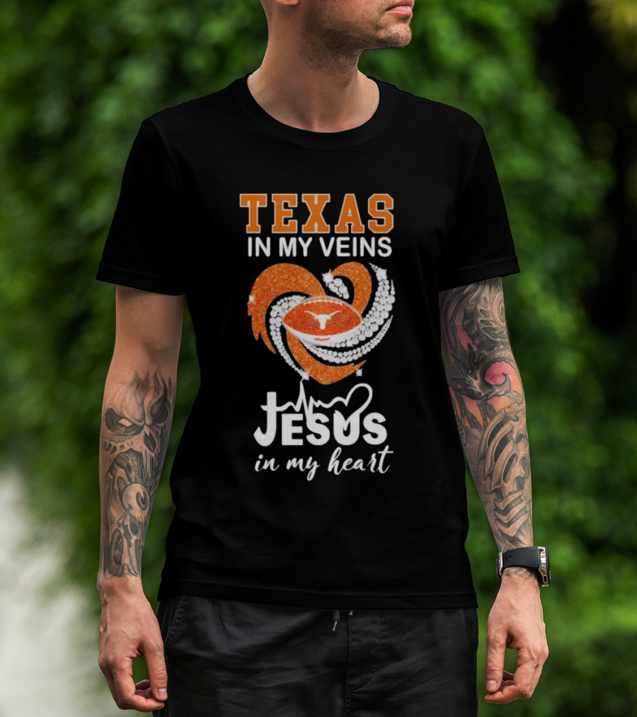 Texas In My Veins Jesus In My Heart Football Diamond T-Shirt