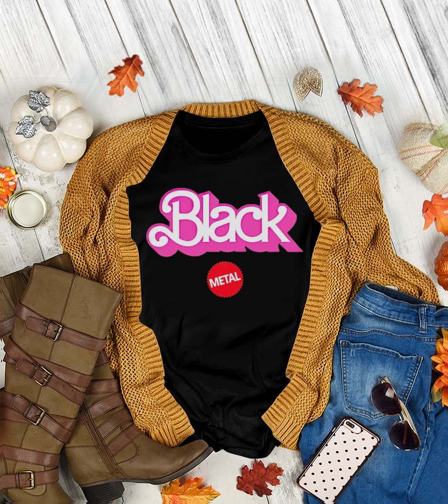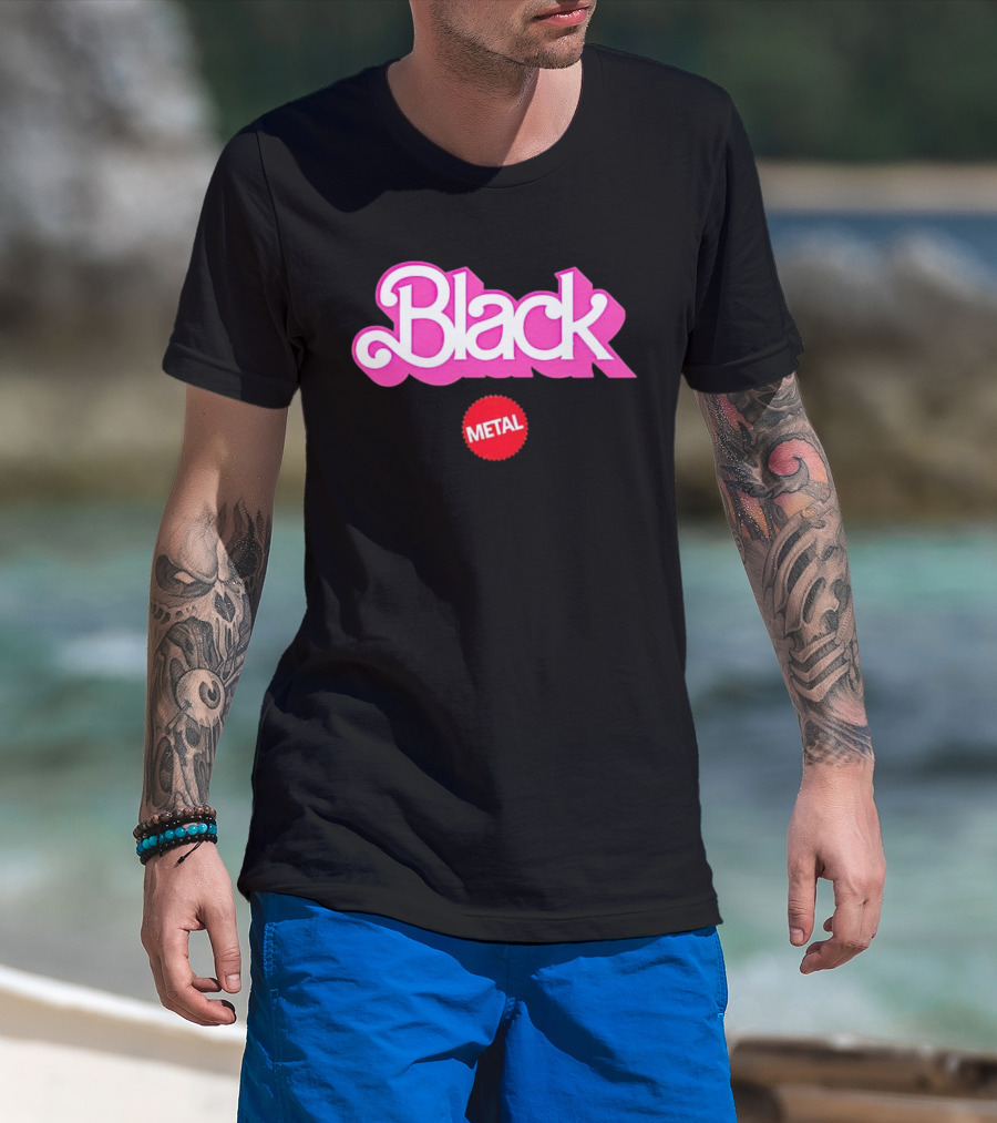 Barbie Black Metal Retro Pink And Red Contrast T-Shirt