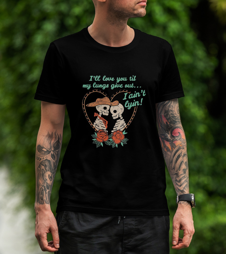 I'll Love You Til My Lungs Give Out I Ain't Lyin Skeleton Cowboy Roses T-Shirt