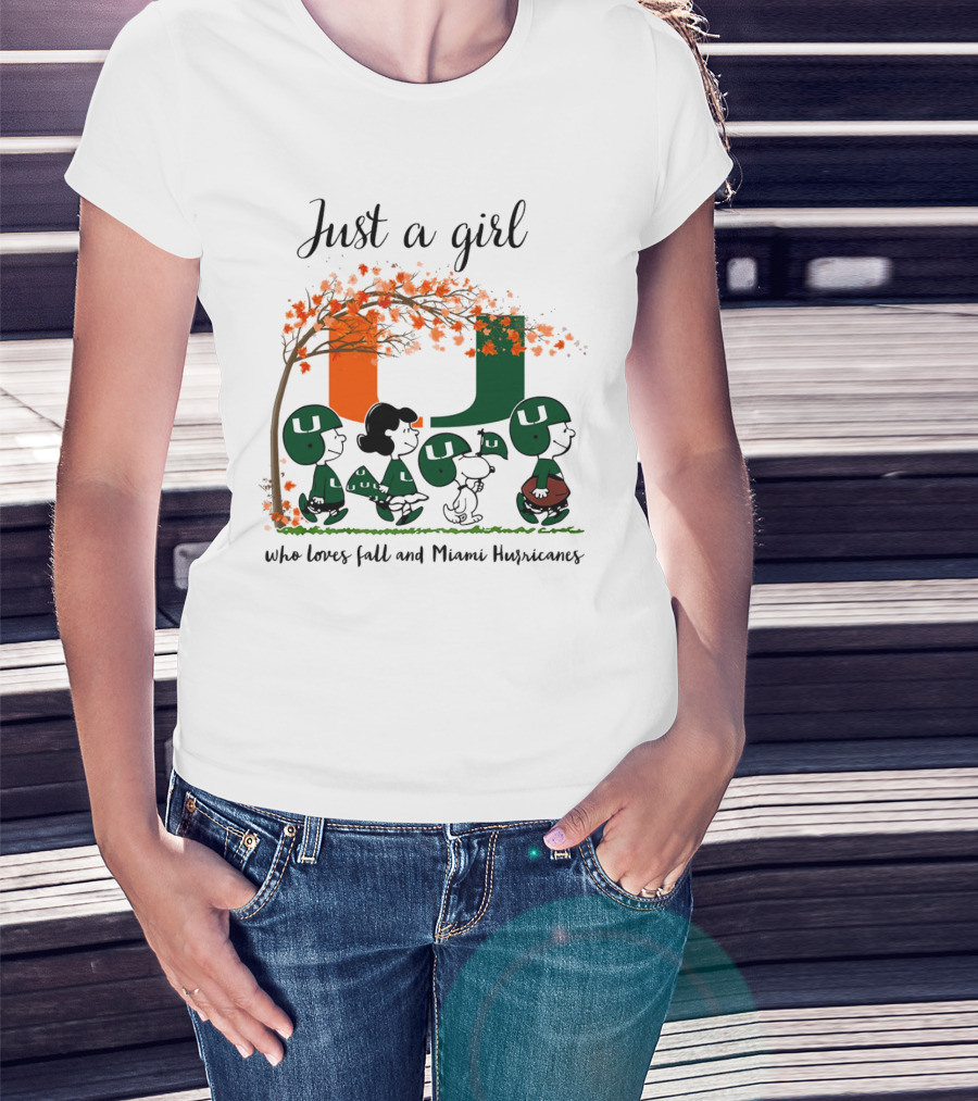 Just A Girl Who Loves Fall And Miami Hurricanes Peanuts Cartoon T-Shirt