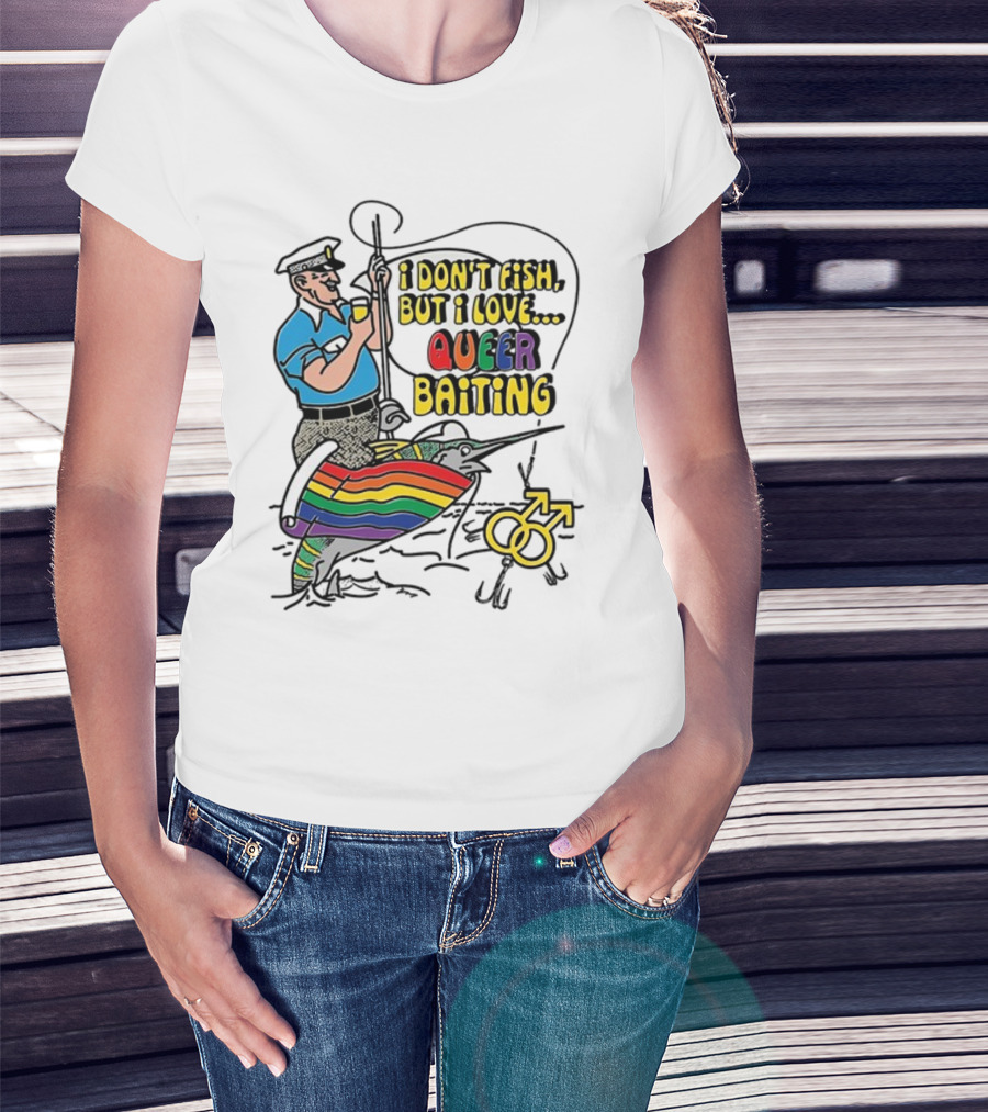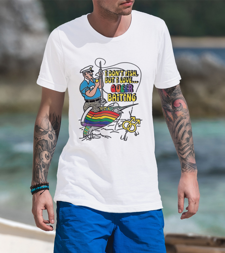 I Don't Fish But I Love Queer Baiting Rainbow Sailor With Yellow Male Symbols T-Shirt