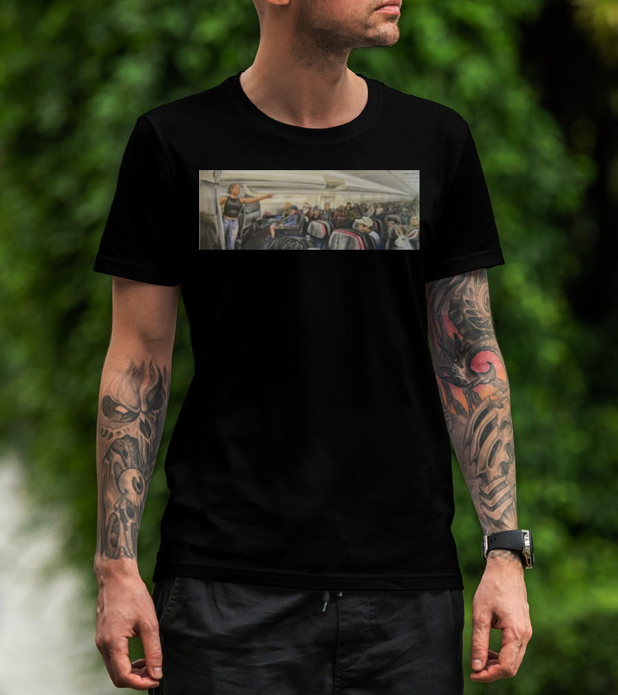 Travispaints Airplane Lady Freak Out Pointing Bigfoot Statue T-Shirt