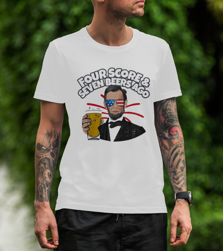 Four Score And Seven Beers Ago American Flag Sunglasses Beer Lincoln T-Shirt