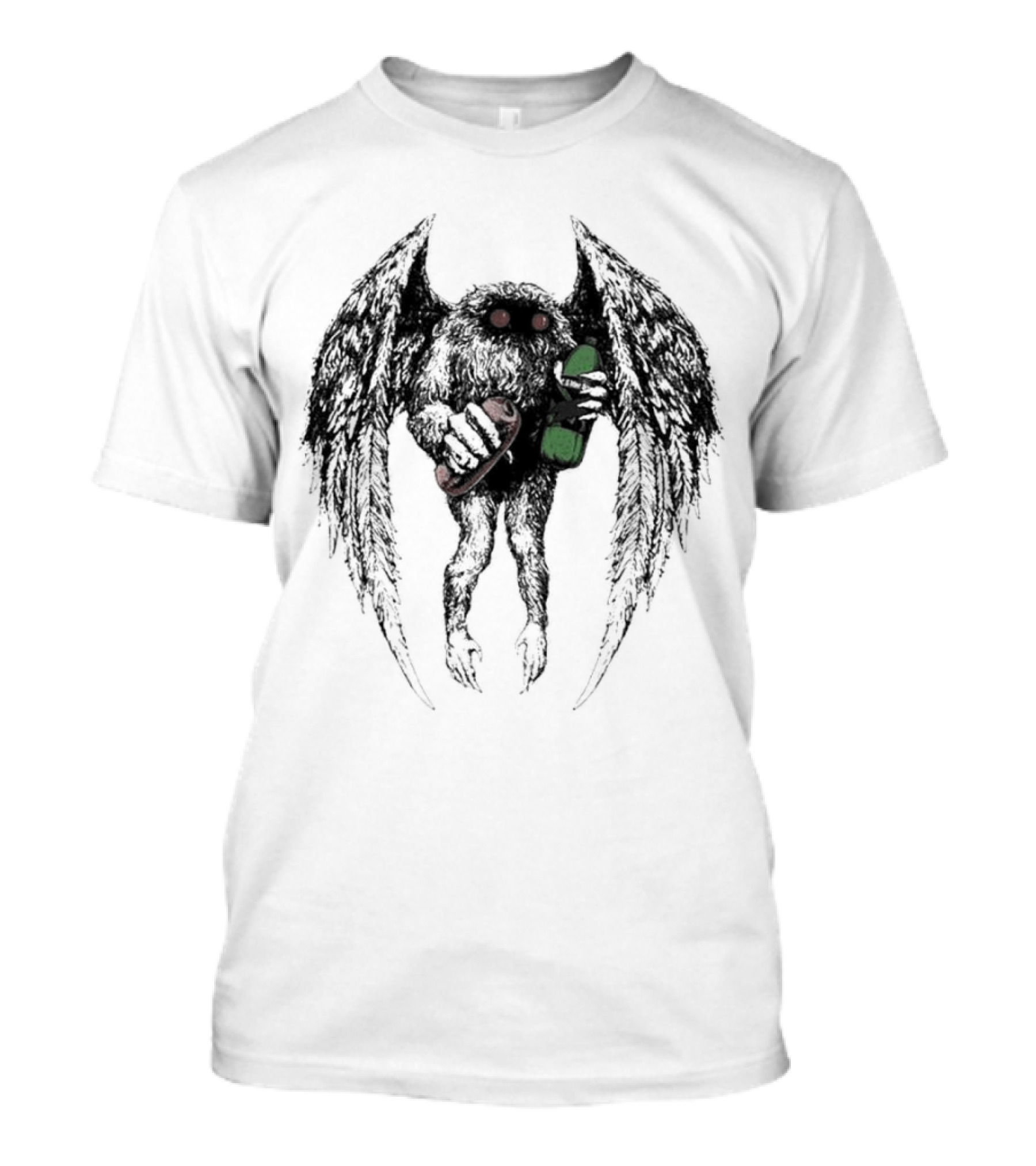 The Appalachian Guardian Threat Llama Mothman with Wings and Green Flask T-shirt is designed for everyday wear and a consistent fit. Fabric is pre-shrunk ring-spun cotton with durable stitching. See the size chart below for exact measurements.