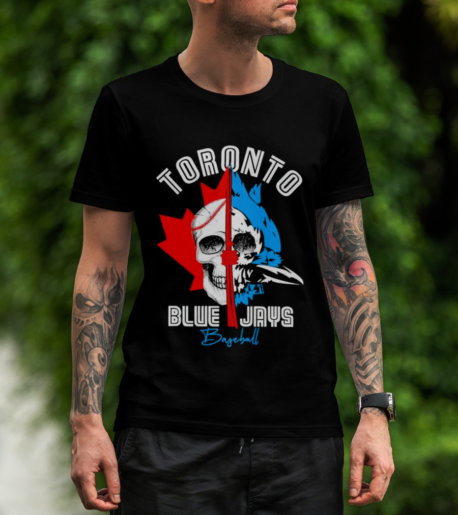 Toronto Blue Jays Skull Baseball Canada Flag T-Shirt
