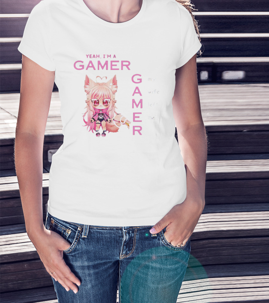 Yeah I'm A Gamer My Wife Left Me Chibi Fox Character T-Shirt