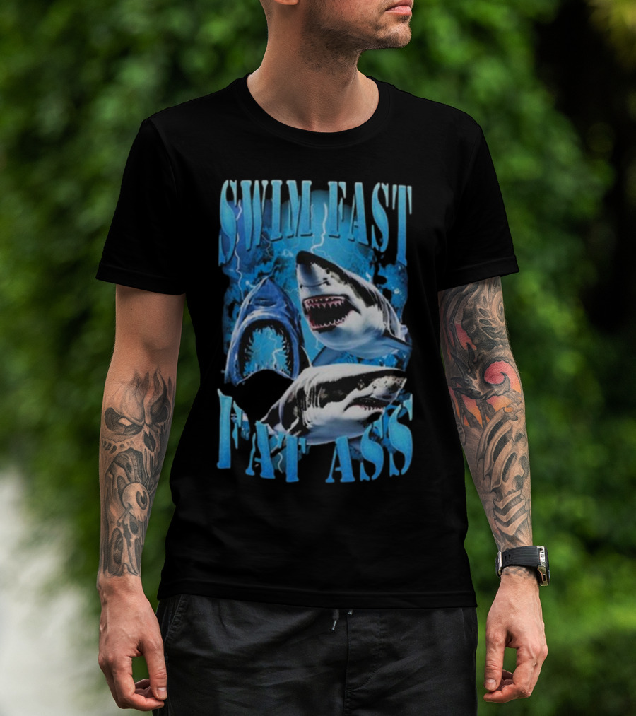 SWIM FAST EAT ASS Sharks Ocean T-Shirt