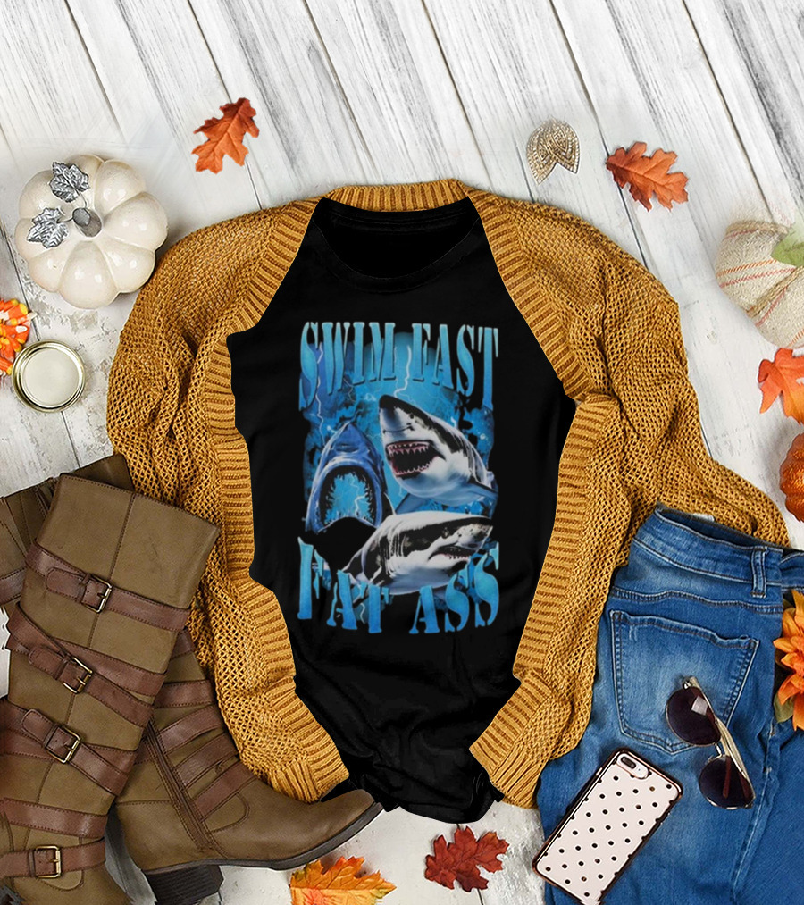 How much will this SWIM FAST EAT ASS Sharks Ocean shirt shrink?
