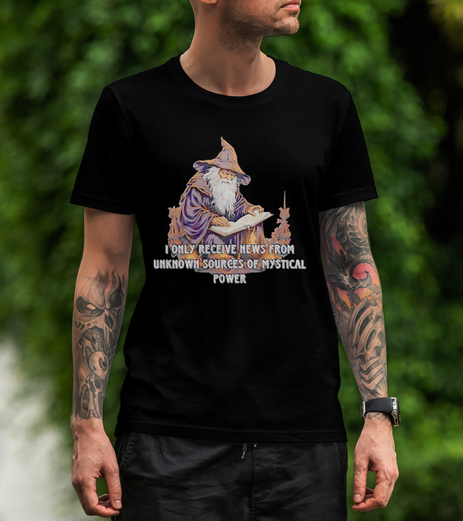 I Only Receive News From Unknown Sources Of Mystical Power Wizard Reading Book T-Shirt