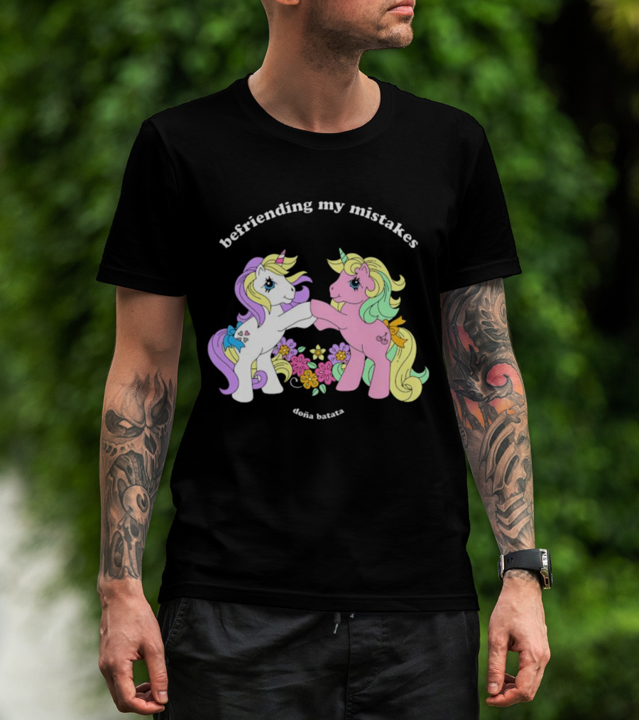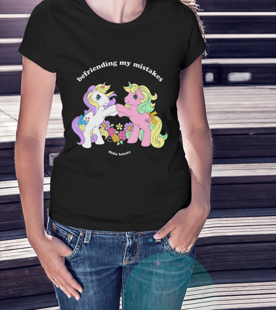 Befriending My Mistakes Doña Batata Unicorns With Colorful Flowers T-Shirt