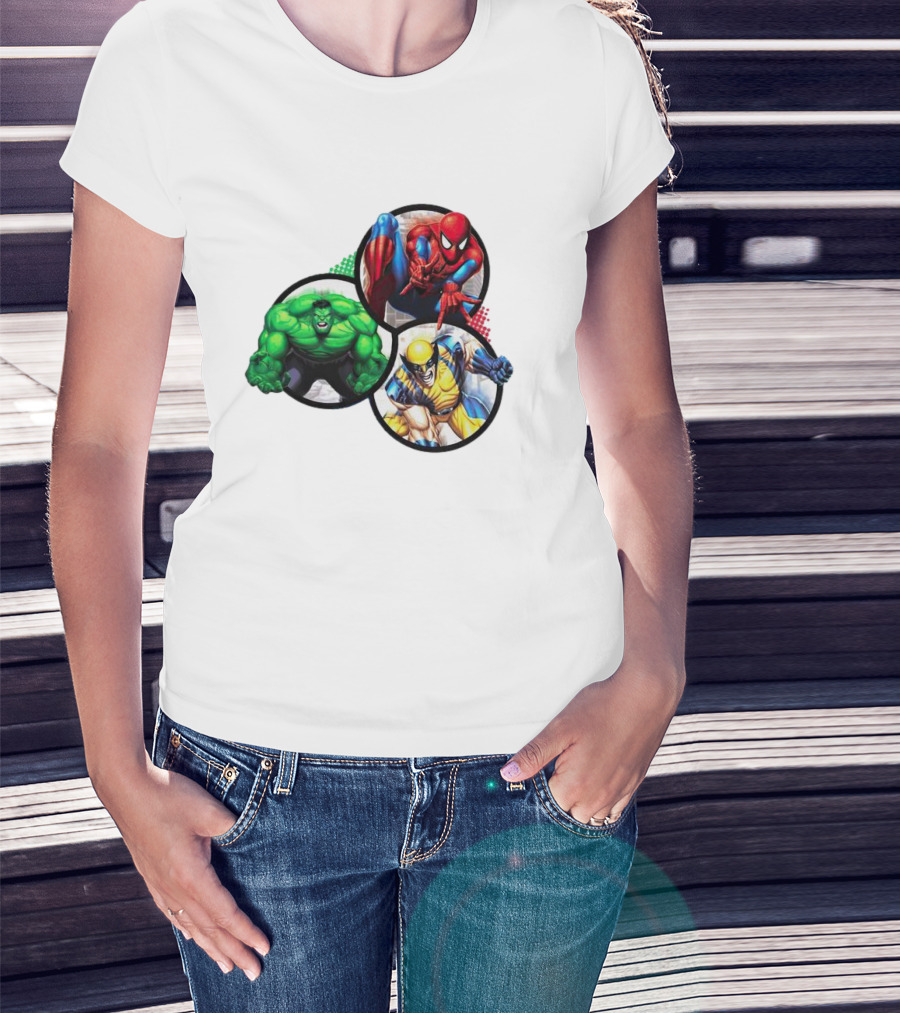 The Marvel's Trinity Hulk Spider-Man Wolverine T-shirt is designed for everyday wear and a consistent fit. Fabric is pre-shrunk ring-spun cotton with durable stitching. See the size chart below for exact measurements.