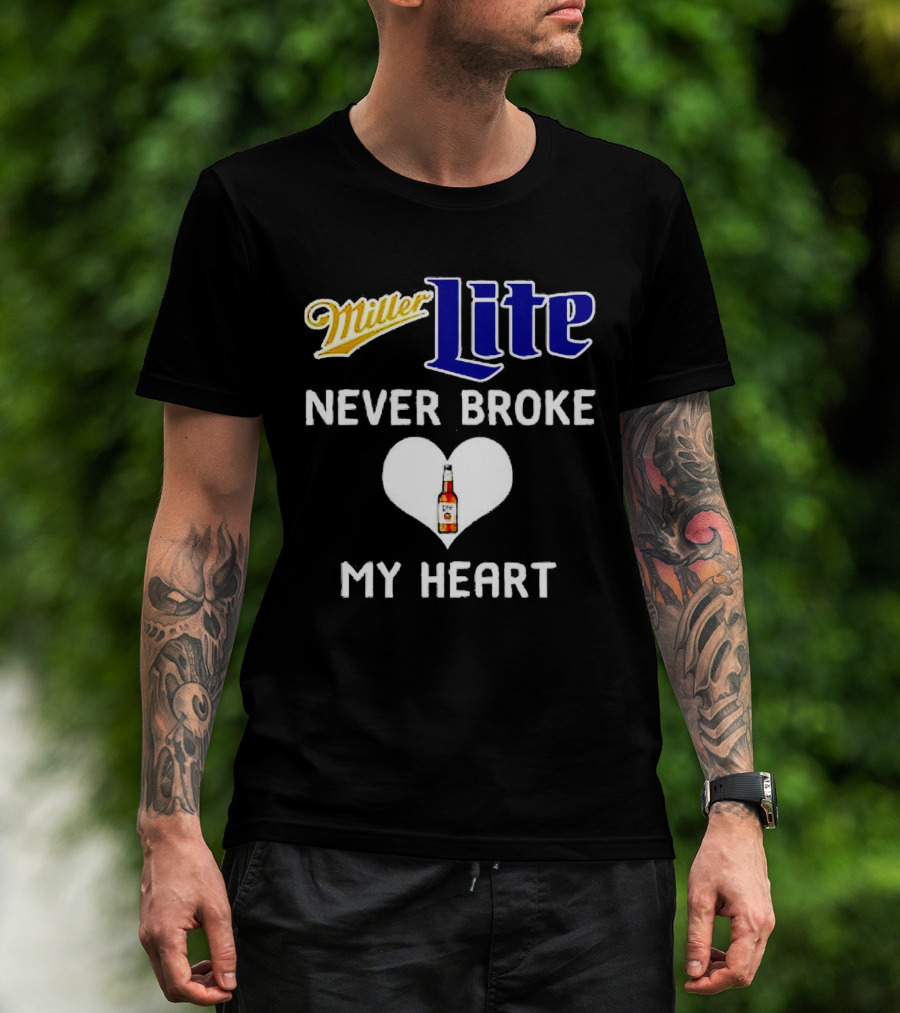 Miller Lite Never Broke My Heart Beer Bottle In Heart T-Shirt