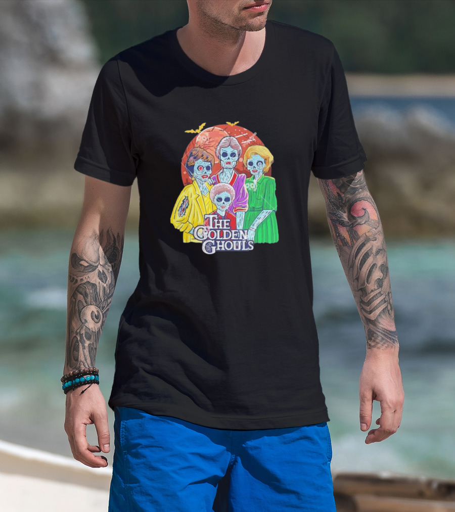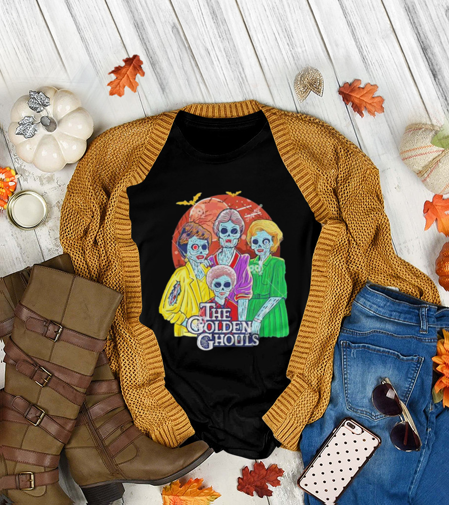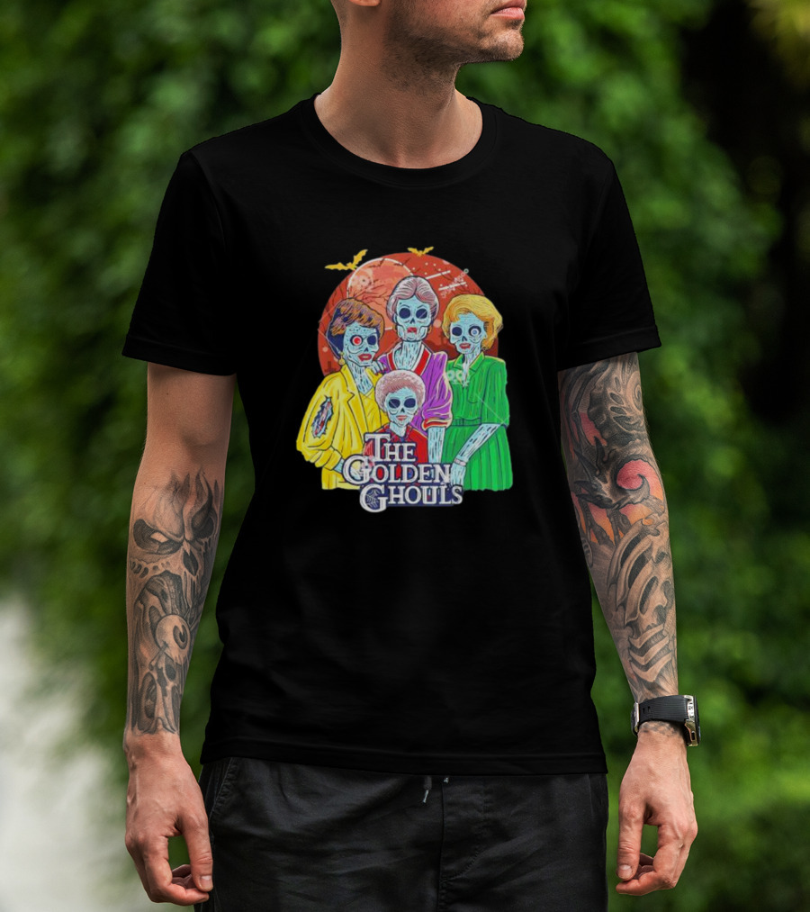 The Golden Ghouls Halloween Zombie Characters With Moon And Bats T-Shirt