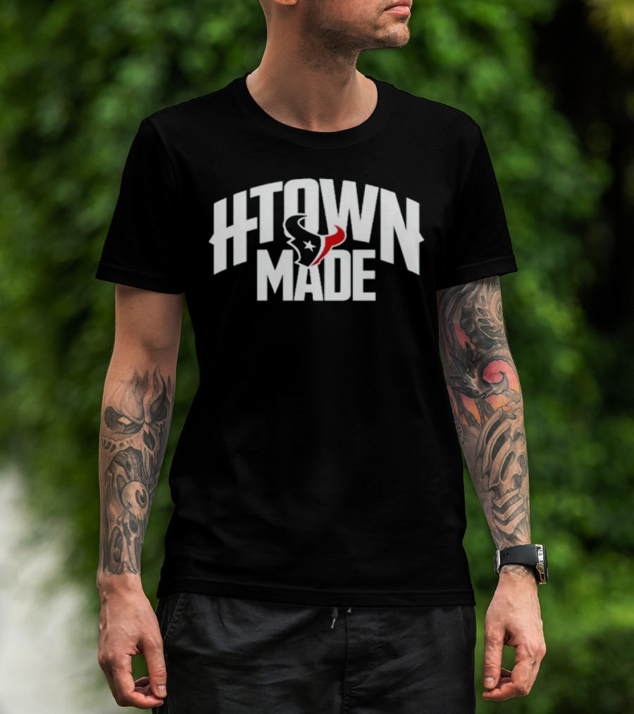 The H-Town Made Houston Texas Texans T-shirt is designed for everyday wear and a consistent fit. Fabric is pre-shrunk ring-spun cotton with durable stitching. See the size chart below for exact measurements.