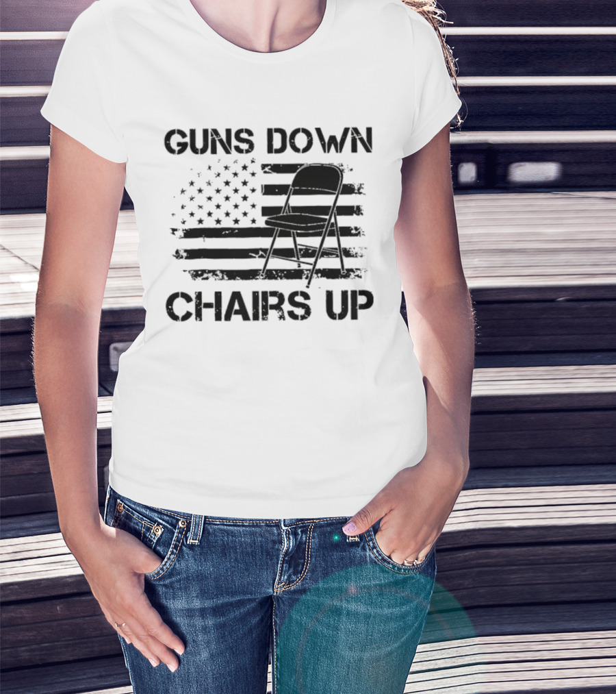 Guns Down Chairs Up American Flag With Folding Chair T-Shirt
